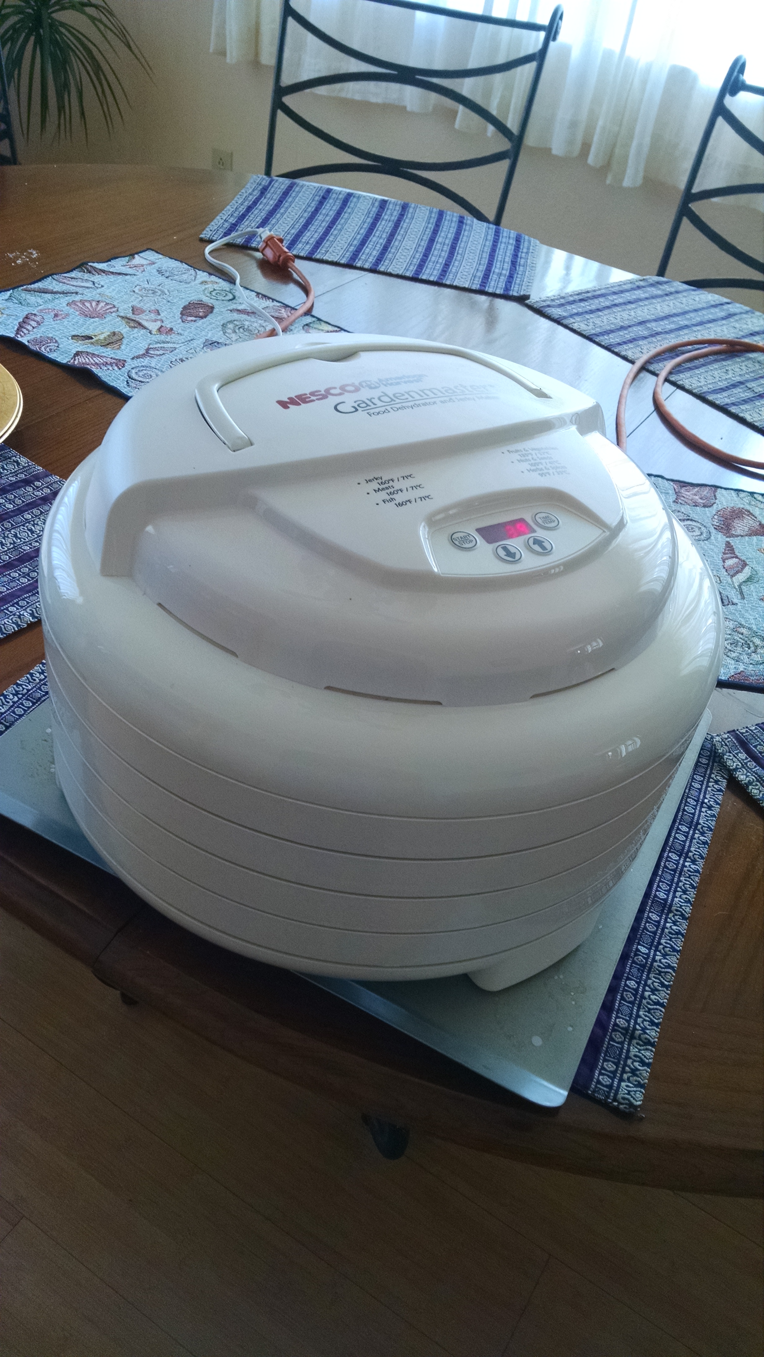 After 8 hours test for doneness. The leather should be set and should not stick to your fingers, but should still give a little when you press down. If not done, let it continue to dry and check every hour to reach a good fruit leather consistency that is not too dry and tough. (Of course, kids love the chewy stuff and it is a good way to slow down consumption of the fruit leather.)